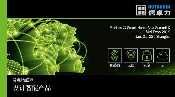 全球電子元器件分銷商儒卓力 (Rutronik Elektronische Bauelemente GmbH)將于1月21到22日亮相在上海舉行的2019第三屆智能家居亞洲峰會暨精品展。儒卓力是這次盛事的贊助商之一,將在迷你體驗區(qū) (mini Expo)設(shè)有展位。